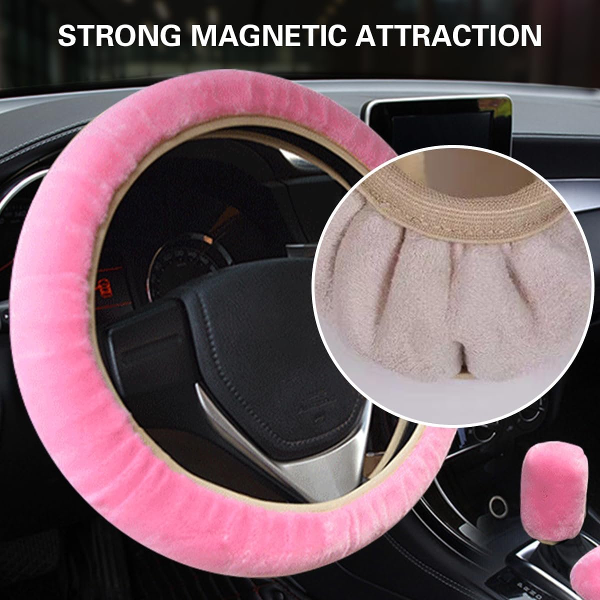 - Package includes: the package includes a steering wheel cover, a gear lever cover and a handbrake cover. The accessories are complete and can meet your daily use. Three colours are available: white, camel, pink, which fit most car interiors and improve the overall temperament and value of your car. Soft and comfortable hand feeling, makes driving more comfortable.