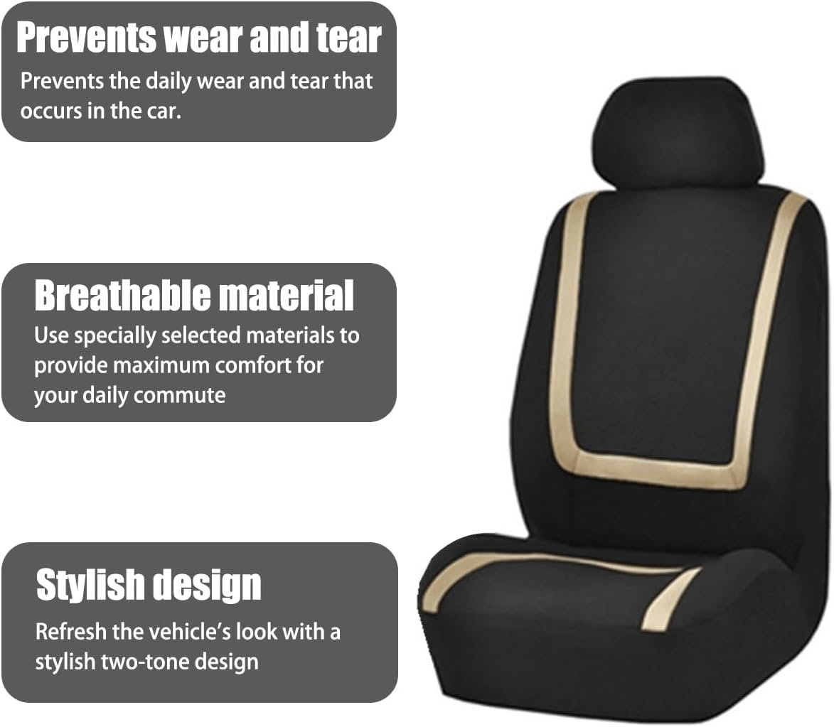 Car Seat Covers Full Set, Breathable Premium Cloth Automotive Seat Cover, Universal Front and Rear Seat Covers, Easy to Install Car Accessories for Most Cars Trucks SUV (Beige)